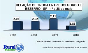 VENDA DE UM BOI GORDO EM SP RESULTA NA COMPRA DE APENAS 1,87 BEZERRO NESTE MÊS, A PIOR MARCA EM 4 ANOS