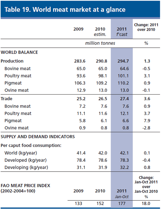 Tabela 1- Mercado Mundial de Carne – FAO