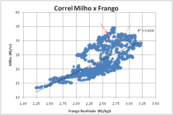 Gráfico 4 – Correlação entre o Milho e o Frango Resfriado.