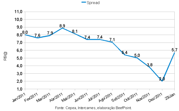 Gráfico 4. Spread Indicador Esalq/BM&FBovespa boi gordo à vista x equivalente físico